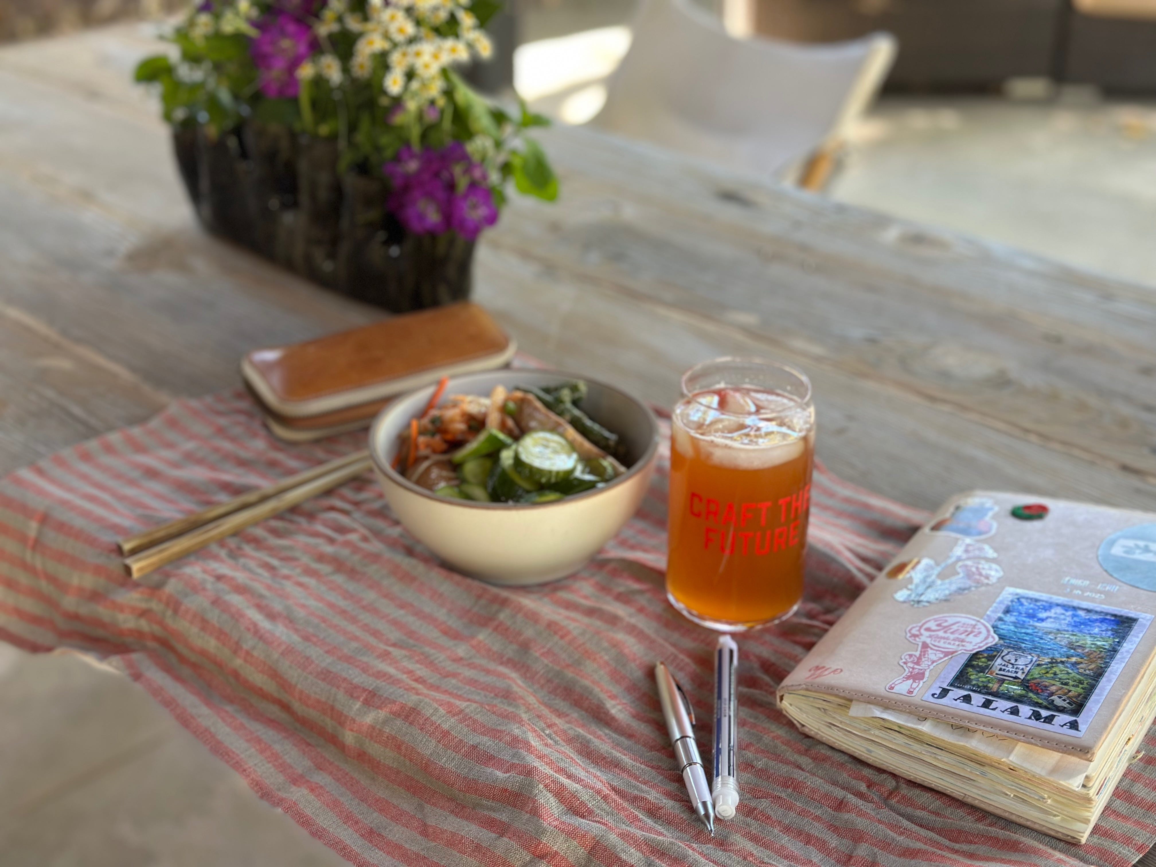 The other part of my brain goes into a musing about being invited to a formal tea ceremony for the first time in Japan. There, I learned about the idea that everything in a petite tea house, from a scroll that was hanging on the wall to a flower arrangement that was displayed, was carefully selected for the specific occasion. They were placed to hold an intention of the meeting that was happening. This idea still blows my mind and feels so present in my everyday life when I try to take the time to set up a table for a family meal, or a solo lunch outside on the patio.